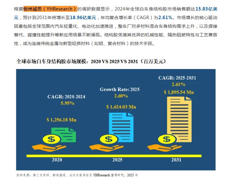 1月30日恒州诚思(YHresearch)发布的白车身结构胶市场报告被微信公众号:国际胶粘剂及化工原料展 引用