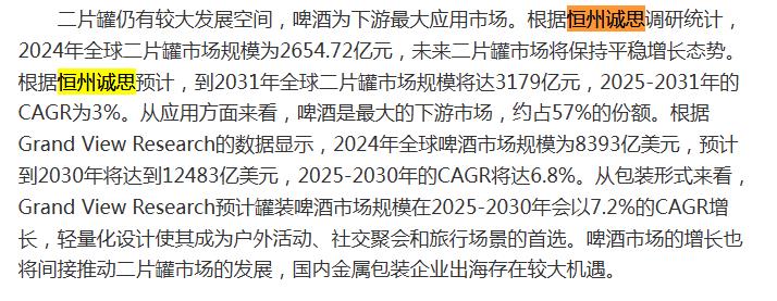 2月2日恒州诚思(YHresearch)发布的二片罐市场报告被微信公众号:环球制罐展 引用