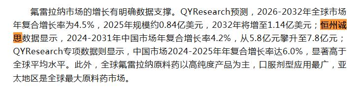 2月3日恒州诚思(YHresearch)发布的氟雷拉纳市场报告被微信公众号:山东洛克化工有限公司 引用