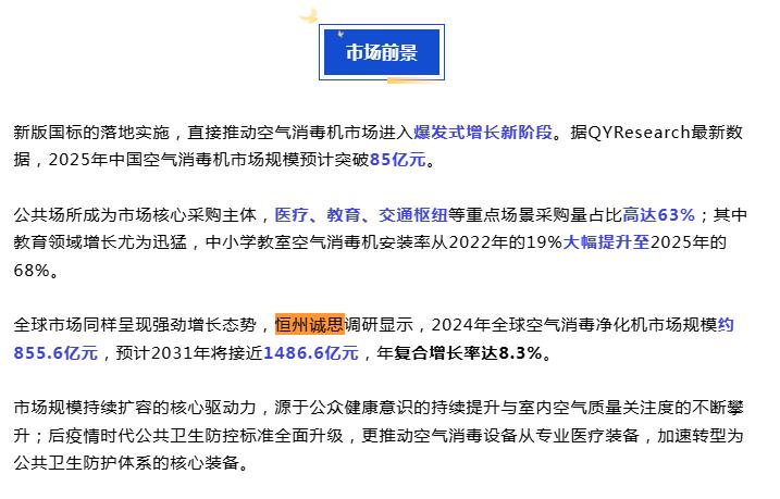 2月4日恒州诚思(YHresearch)发布的空气消毒净化机市场报告被微信公众号:贝登医疗 引用