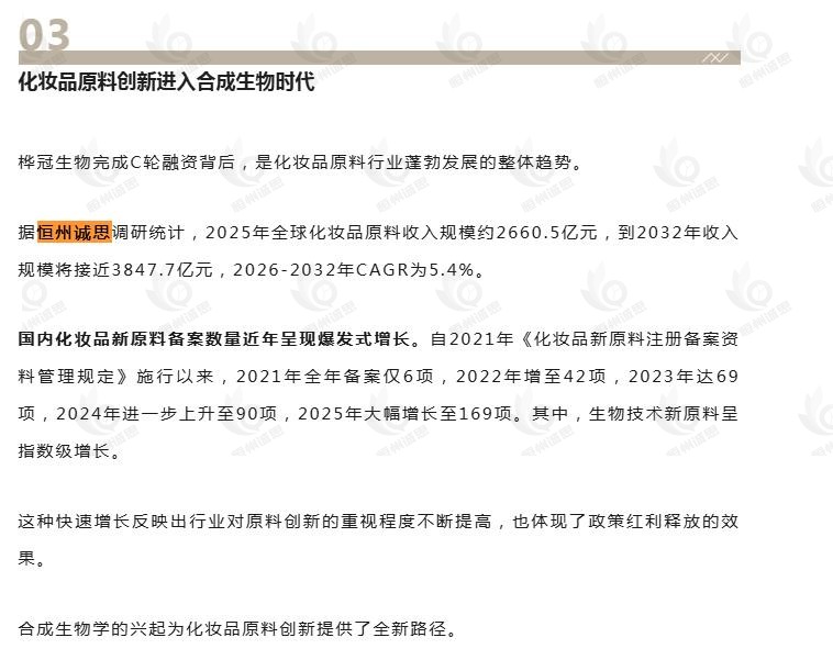 2月7日恒州诚思(YHresearch)发布的化妆品原料市场报告被微信公众号:i美妆头条 引用