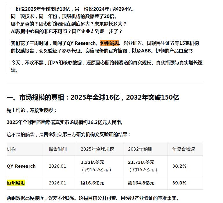 2月13日恒州诚思(YHresearch)发布的固态断路器市场报告被微信公众号:老龚理逻辑 引用