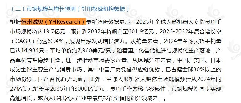 2月23日恒州诚思(YHresearch)发布的人形机器人多指灵巧手市场报告被微信公众号:龟行象步 引用