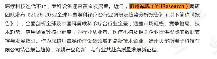 2月26日恒州诚思(YHResearch)发布的耳鼻喉科诊疗台市场报告被微信公众号:贝尔斯电子 引用