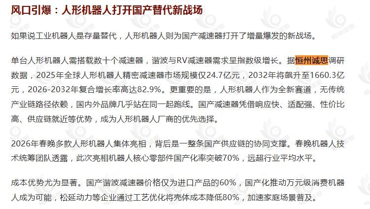 2月27日恒州诚思(YHResearch)发布的人形机器人精密减速器市场报告被微信公众号:新质界 引用