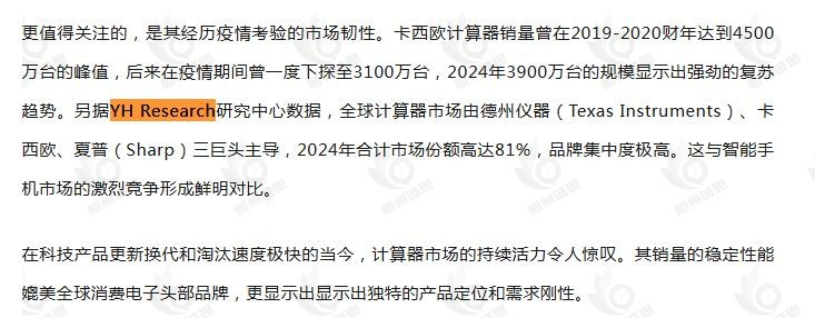 2月27日恒州诚思(YHResearch)发布的计算器市场报告被微信公众号:2077新品案例解读 引用