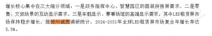2月28日恒州诚思(YHResearch)发布的LED租赁屏市场报告被微信公众号:LED拼接屏机柜配套专家 引用