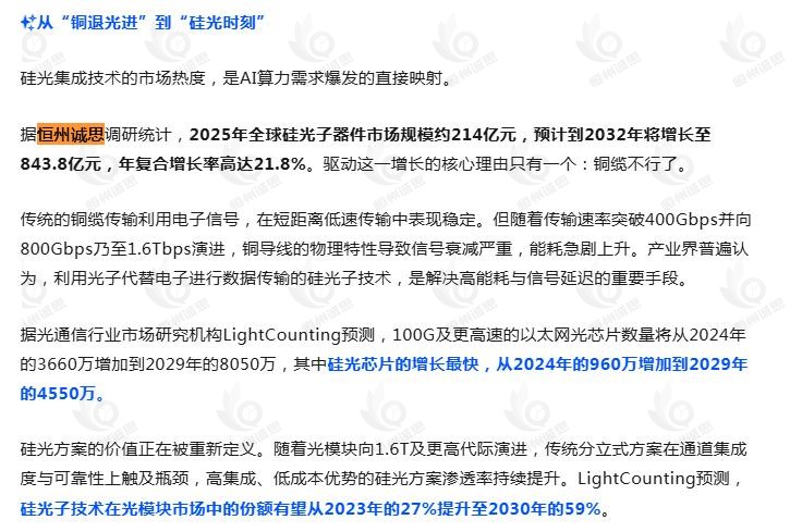 3月2日恒州诚思(YHResearch)发布的硅光子器件市场报告被微信公众号:芯项目11FIM 引用
