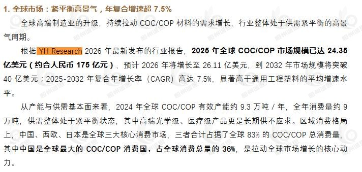 3月12日恒州诚思(YHResearch)发布的COC/COP市场报告被微信公众号:化学工业 引用
