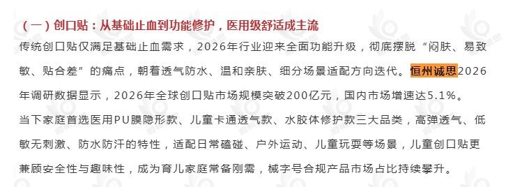 3月20日恒州诚思(YHResearch)发布的创口贴市场报告被微信公众号:上海国际个人护理博览会 引用