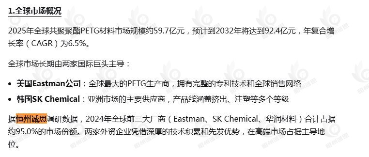 3月27日恒州诚思(YHResearch)发布的共聚聚酯PETG材料市场报告被微信公众号:PC聚碳酸酯产业链 引用